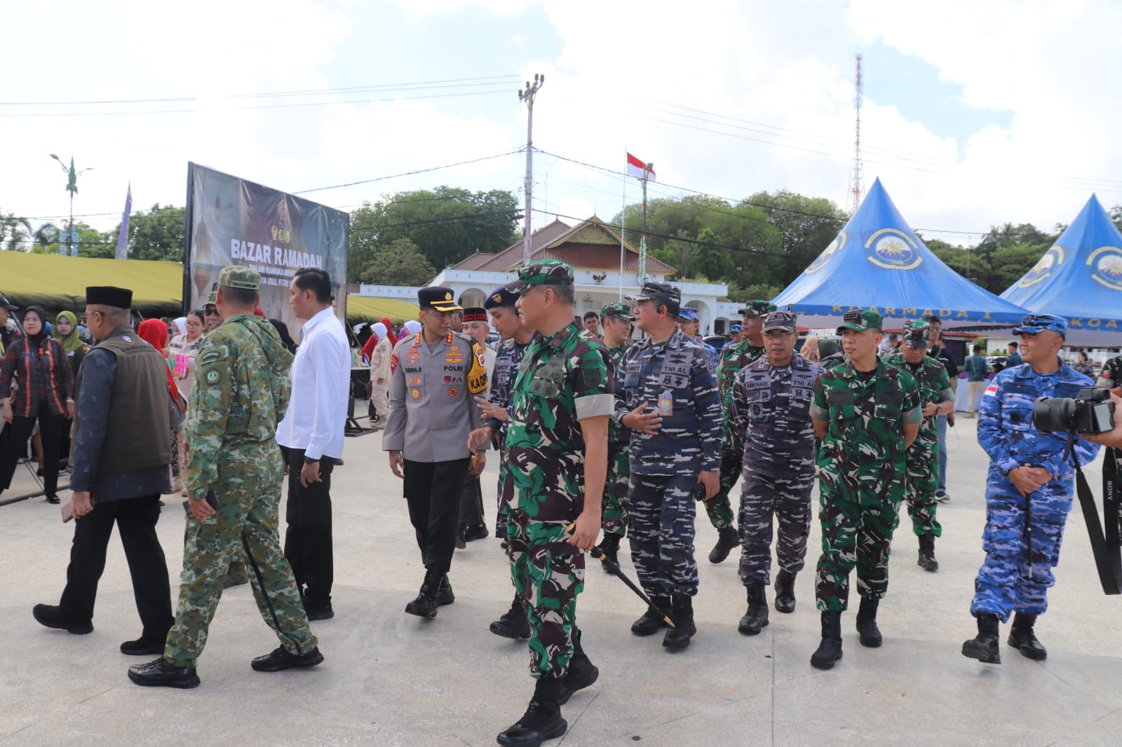 Pangkogabwilhan I Letjen TNI Kunto Arif Wibowo dan Forkopimda tinjau stand bazar, termasuk Kodim 0315/Tanjungpinang. Partisipasi Kodim ini wujud kepedulian TNI bantu masyarakat penuhi kebutuhan pokok Ramadhan dan Idul Fitri.