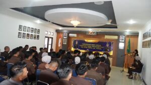 Beberapa hal penting yang ditekankan Wakajati, diantaranya : Pertama, terkait kebijakan-kebijakan strategis Jaksa Agung, kita dituntut untuk terus meningkatkan profesionalisme dan akuntabilitas dalam menjalankan tugas. Kebijakan ini bukan hanya arahan, tetapi menjadi pedoman kerja yang harus kita terjemahkan ke dalam tindakan nyata.